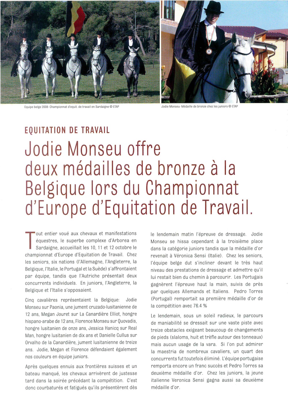 Championnats d’Europe d'équitation de travail en Sardaigne, 2008